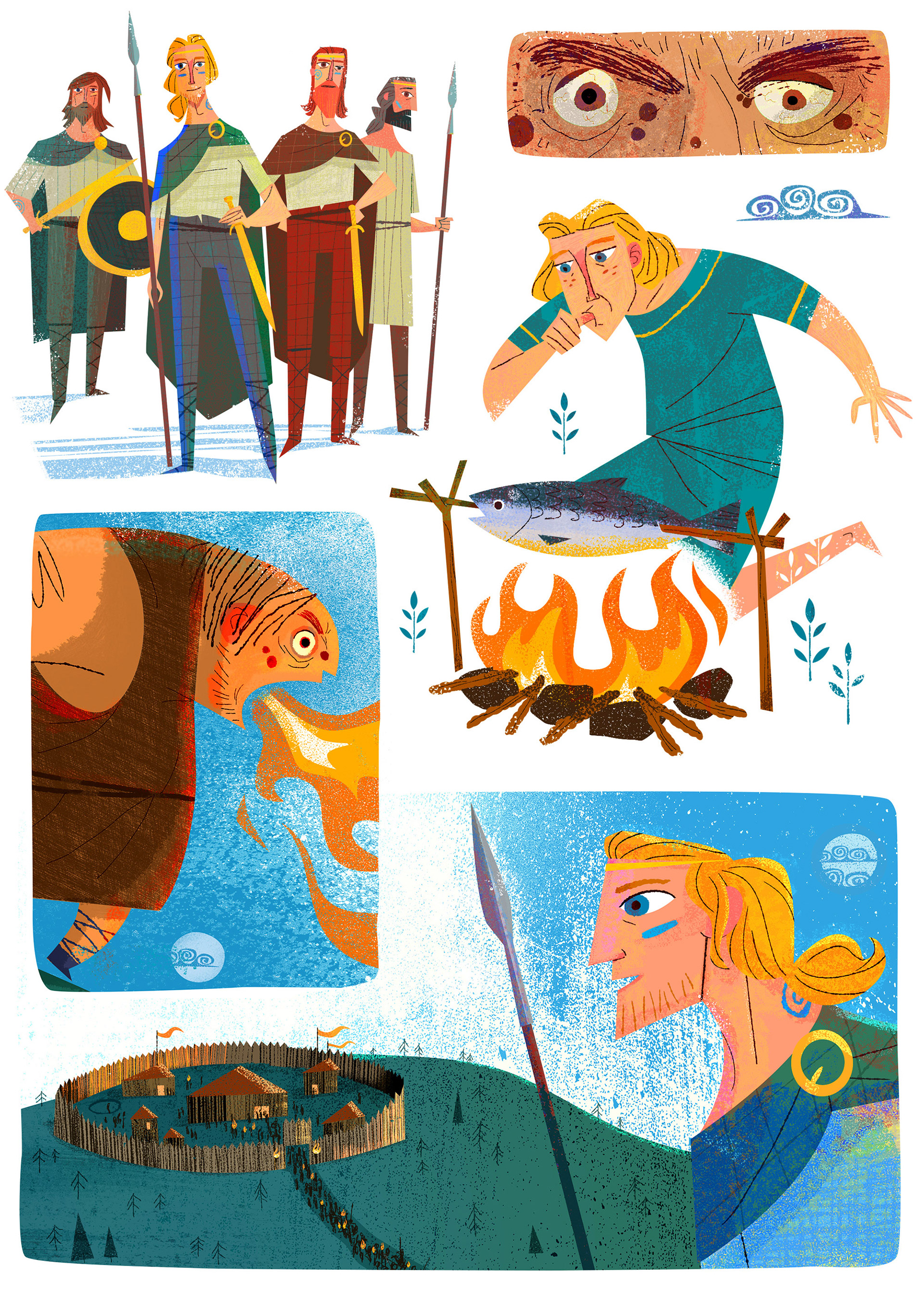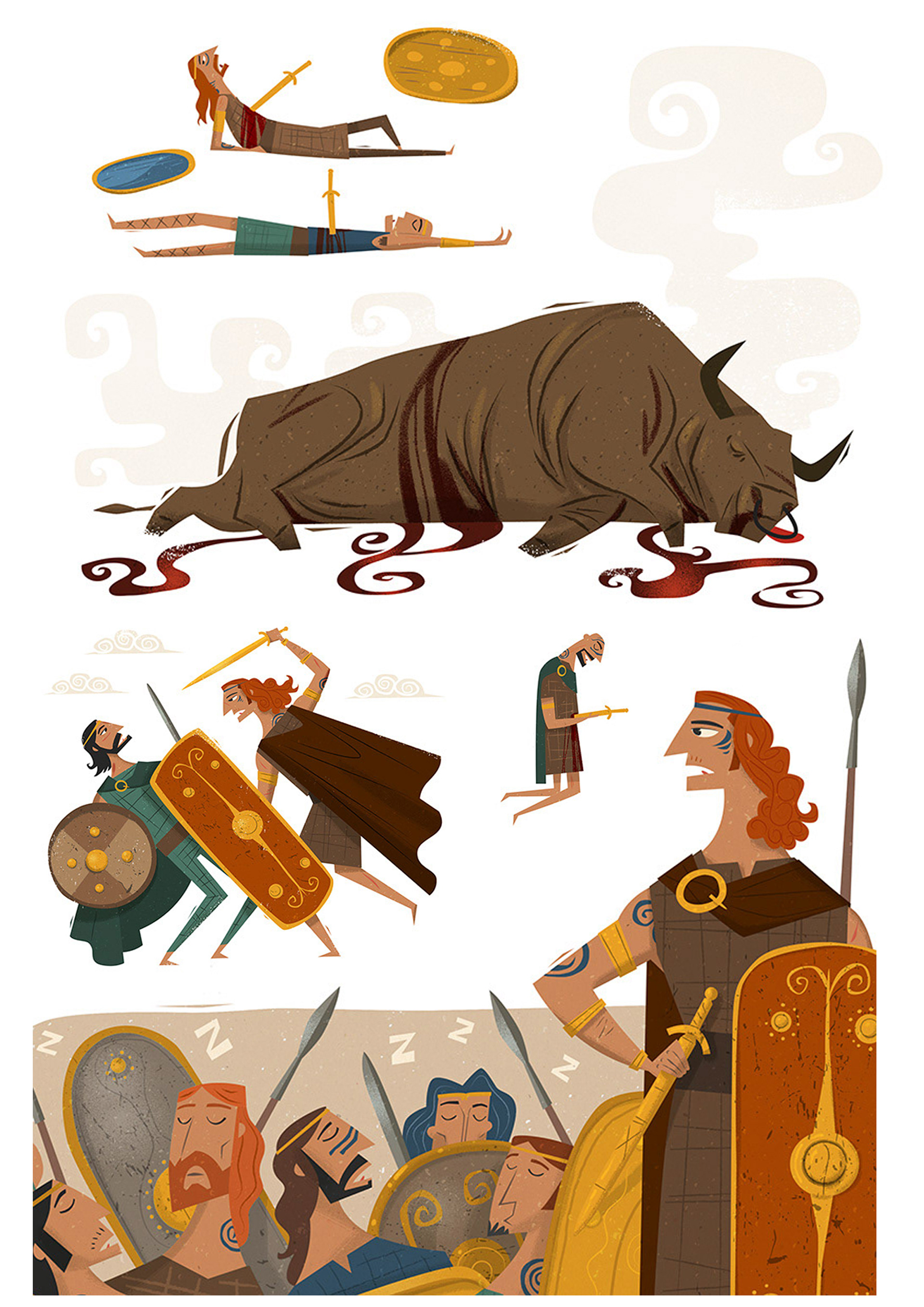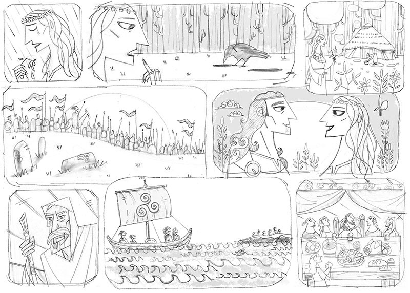 Below are a selection of illustrations I made for a series of Celtic stories. The first set illustrate the story of Deirdre and Naoise (aka Deirdre of the Sorrows) and the second set, The Cattle Raid of Cooley. Both stories are set in Pre-Christian Ireland and are part of the rich folklore of Irish storytelling. The panels are shown in a random order.