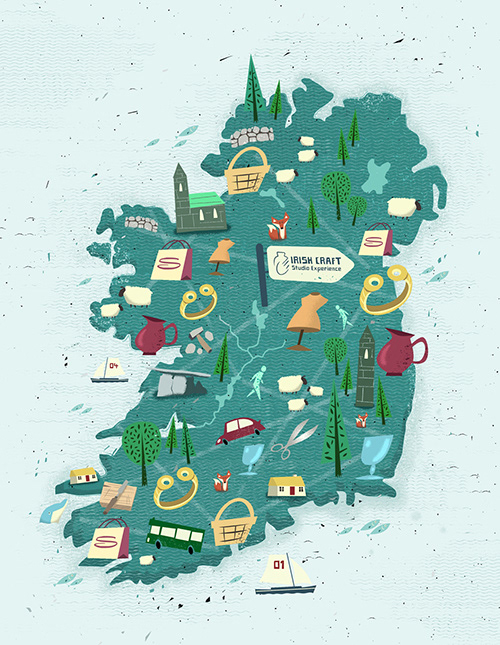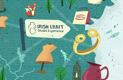 Cover illustration for a short guide to Craft and Design in Ireland. It was produced for this years Showcase Creative Expo - highlighting the diverse range of crafts and makers throughout Ireland. With a strong editorial style the brochure features; Fashion, Jewellery, Shopping, Homewares and a Travel guide.
