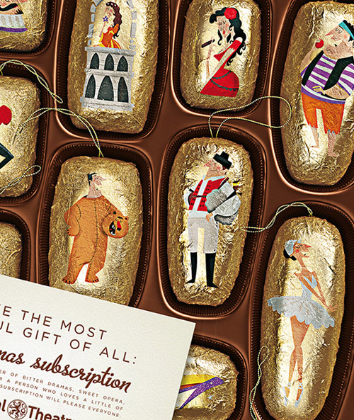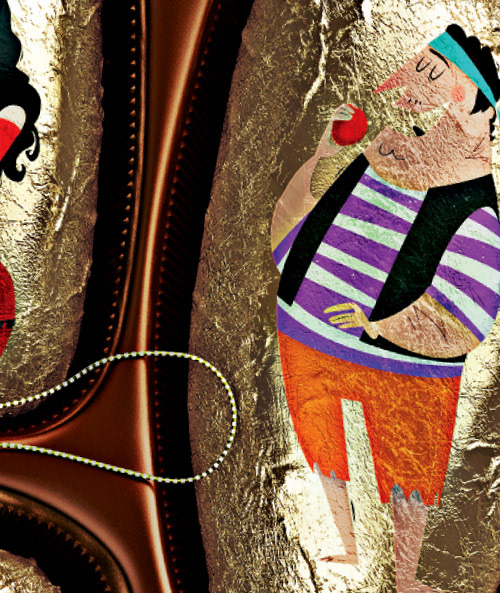 I was invited by the award winning agency Y&R Prague to design the characters for thirteen operas as an outdoor campaign for the National Opera Theatre. On the final poster each illustration appears on a foil wrap inside a luxury chocolate box...the Czechs like their chocolate :) The box itself was created in-house as a 3d element.