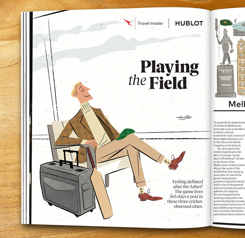 The Gentleman Cricketer, Hugh Hublot. What to do and where to stay, eat and drink while cricketing in Melbourne, London and Mumbai. QantasĀ Magazine January Issue.