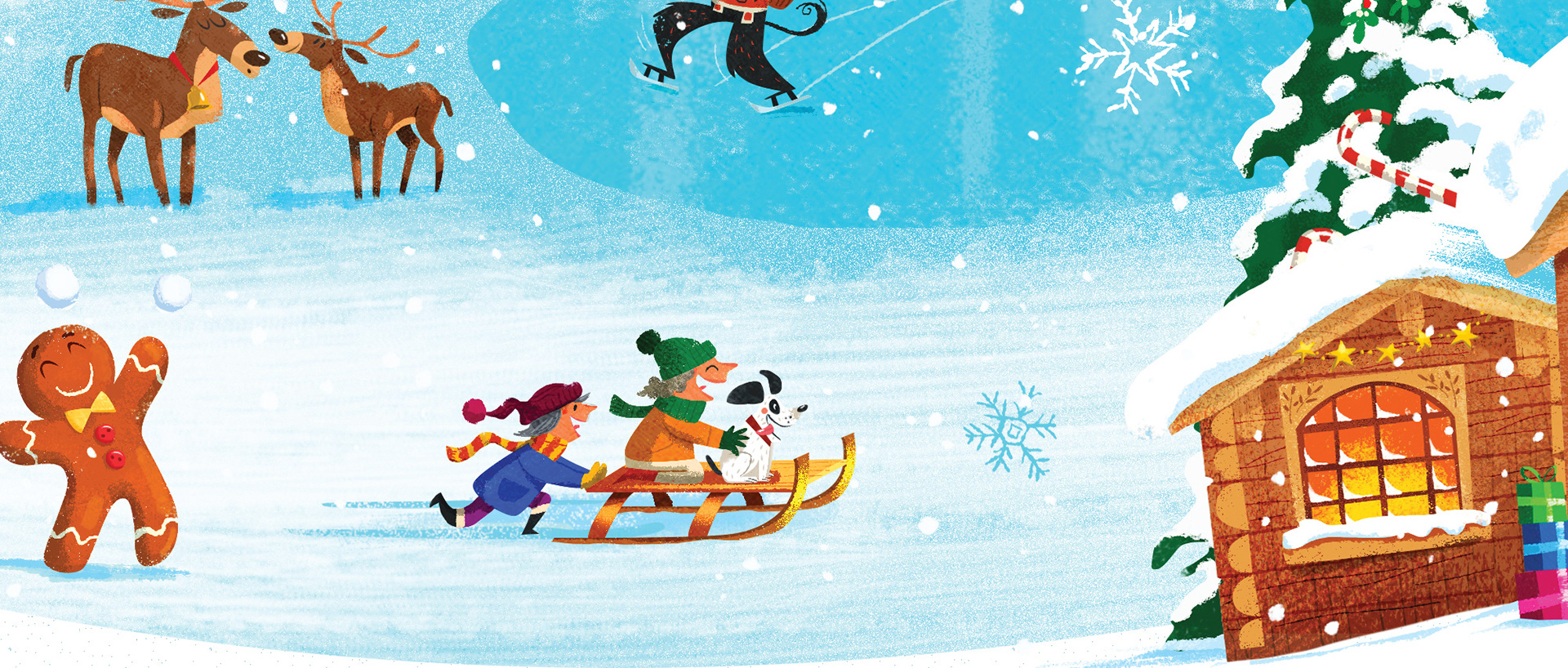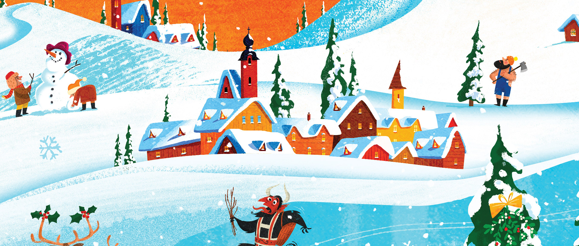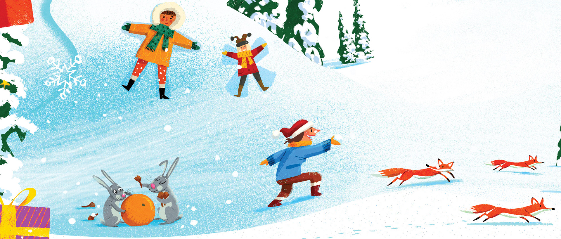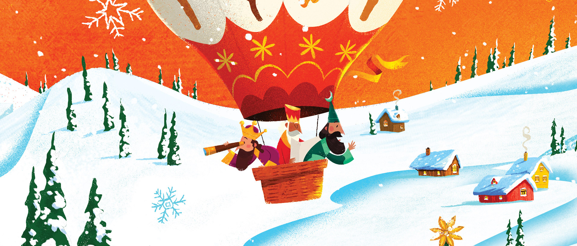 An advent box containing 25 different cooking spices. Each date is peeled back to reveal a different image below similar to a chocolate advent box. The images below include sketched layout, mock up box, inside flaps and close-ups of the final artwork.